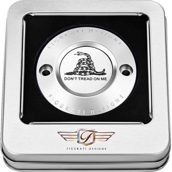 Cubierta FIGURATI DESIGNS de Inspeccion Derby- Don't Tread on Me - Cromo (2 orificios)