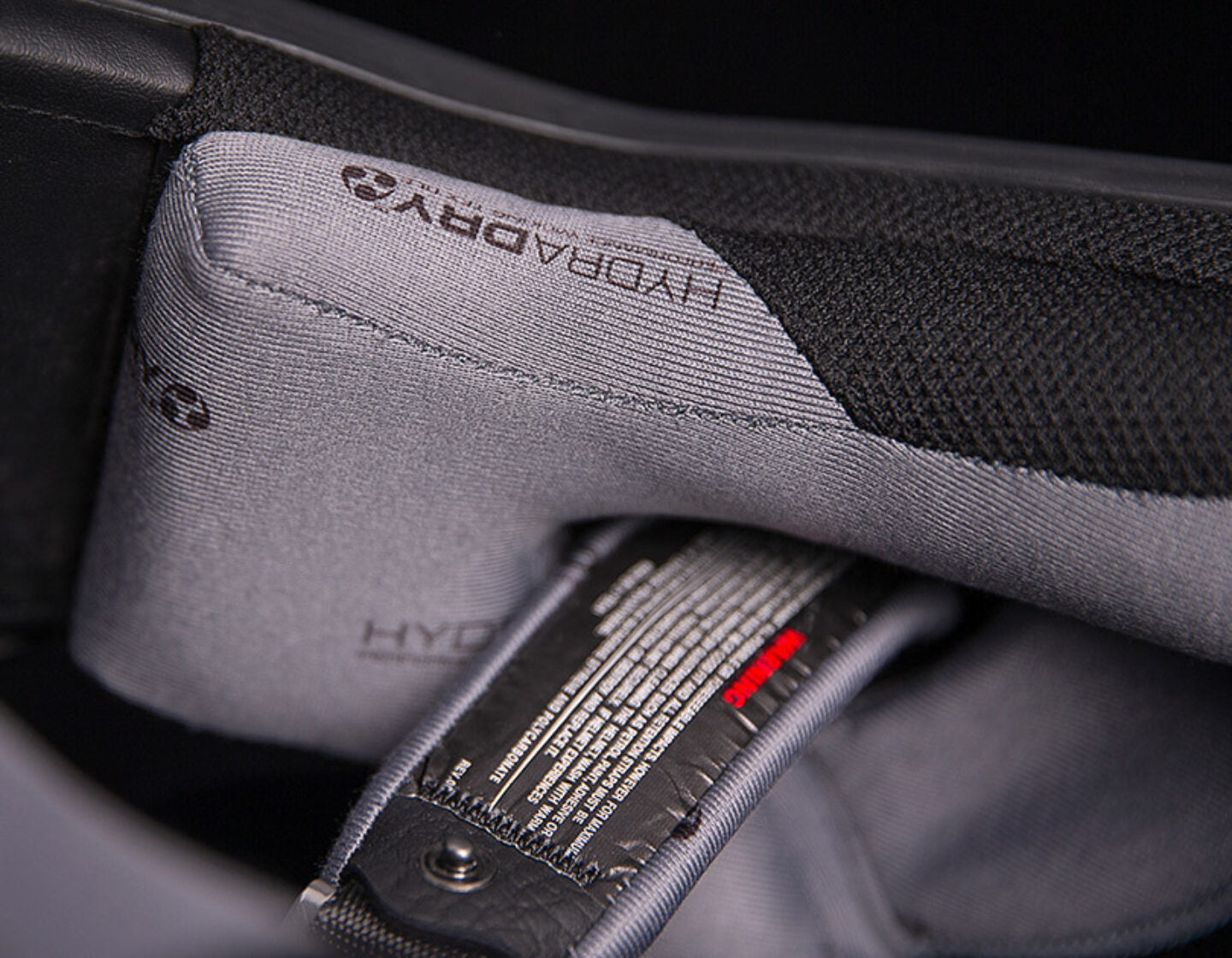 Forro que absorbe la humedad Hydradry™. El forro extraíble Hydradry™ que absorbe el sudor proporciona un ajuste ceñido y contorneado. El aire de las rejillas de ventilación se canaliza entre el forro de comodidad y el forro protector de espuma EPS que absorbe energía para crear un interior casi perfecto centrado en el conductor.