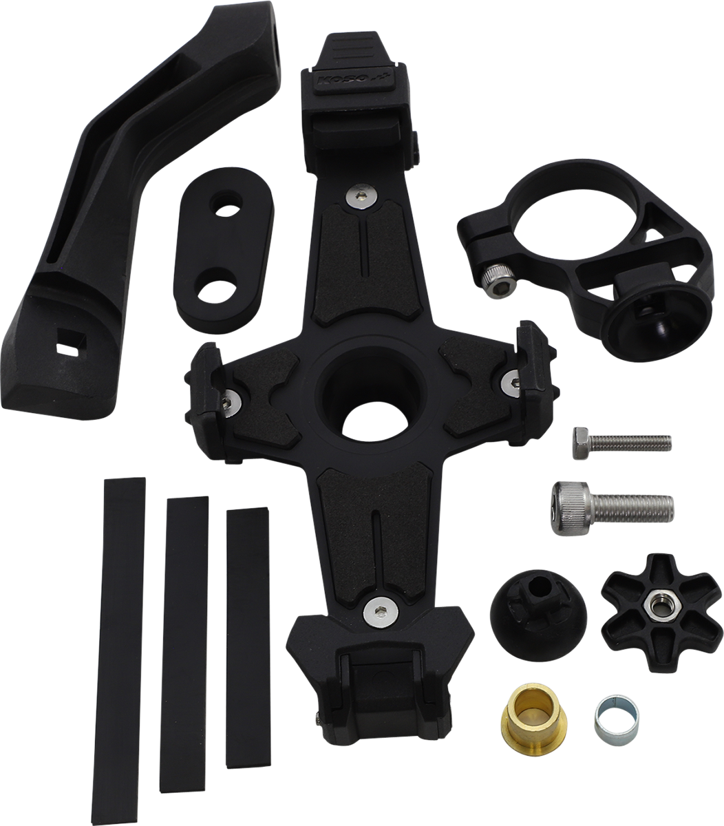 Caracteristicas: Easy adjustable screws, located on the back, lock the desired positioning securely into place Fits 7/8” to 1-1/4” handlebars Six-way adjustable Quick release & lock function design Allows user to find best position with free adjustment and 360° rotation Works with M8 or M10 thread size