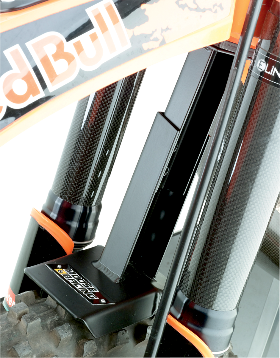 Caracteristicas: Increase fork seal and fork spring life Adjusts to four different lengths to fit minis and full-size bikes Unique arch design to hook the knobby while the rubber on top grips the fender bolts, keeping it in place when transporting